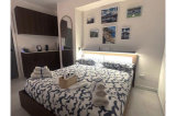 IMPORTANT: Reservations are accepted only with a minimum of 24 hours' notice. This bright, well-maintained and functional 65 sq m ground floor apartment is ideal for those seeking a comfortable and well-equipped vacation just steps from the sea. LAYOUT: Living Area: Entrance to a bright, open space featuring a fully equipped kitchen, dining table, sofa, and TV. Hallway and Sleeping Area: On the right is the bathroom (equipped with an extractor fan and hairdryer). Further along, still on the right, is the double bedroom, while opposite is the bedroom with two single beds. The sleeping area stays pleasantly cool even in the afternoon; the windows are equipped with security bars. Exterior: Access to the shared green area located at the rear of the building, less than a minute's walk from the main entrance, where a clothesline is available. SERVICES AND CONVENIENCES: Air Conditioning: Newly installed air conditioning system (2026), plus two standard fans available as an alternative. Washing machine and Wi-Fi: Both amenities are present and included in your stay. Welcome kit: Coffee machine with complimentary pods and a pantry stocked with essentials (oil, salt, pepper, sugar). Accessories: Iron and ironing board, and complete bed linens (sheets and blankets). Security: The house is equipped with a smoke and carbon monoxide detector, fire extinguisher, and first aid kit. LOCATION AND DISTANCES: Sea: Just a 4-minute walk away. Parking: Ample free public parking is available right in front of the entrance. Nearby amenities: "Fabrizio De André" Park adjacent to the property. A greengrocer, butcher, and supermarkets (Sì con Te and Coal) are all within a 5-minute walk. Town center: The heart of town, the main squares, and the seafront are about a 12-minute walk away.Near the Sea
