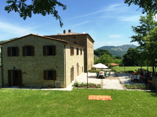 "Relais Valguerriera" is located in Piobbico (PU), in the Marche region, bordering Umbria and Tuscany. It lies in the green and peaceful valley of the Candigliano River, one of the most beautiful and wildest valleys in the Pesaro hinterland, boasting a mild and temperate climate and offering a unique and enchanting view of the Umbrian-Marche Apennines. The Relais, completely immersed in unspoiled nature, is composed of three renovated farmhouses, which house the 11 apartments. A 17 x 10 m swimming pool with a hot tub is available for all guests (not open to the public). Ideal for families and groups of friends, it is surrounded by greenery and is ideal for those seeking a relaxing holiday. It is an ideal destination for mushroom and truffle lovers. It combines unspoiled nature with the cultural interest of the art cities. Stays are available year-round, for weekly or weekend stays. It is possible to rent individual apartments or entire farmhouses (from 10 to 42 people). Description Farmhouses / Apartments Total sleeps no. 81 (55 + 26 on sofa bed) no. 3 Farmhouses with large private garden furnished with tables, chairs and umbrellas + barbecue area: MULINO ? poolside ? 4 two-room apartments ? total sleeps 20 (12 + 8 on sofa bed) ESSICCATOIO ? hillside ? 1 three-room apartment + 2 two-room apartments - total sleeps 20 (12 + 8 on sofa bed) ROSE ? hillside ? 1 five-room apartment + 2 three-room apartments + 1 two-room apartment - total sleeps 42 (28 + 14 on sofa bed) no. 11 welcoming and functional apartments, completely independent and of different sizes (7 two-room apartments + 3 three-room apartments + 1 five-room apartment), with various accommodation options for couples, families or groups of friends. Two-room apartment for 3-5 people (50 sq m) ? Living room with kitchenette and 1 queen-size sofa bed, 1 double bedroom with single bed, 1 bathroom with shower. Three-room apartment for 5-7 people (65 sq m) ? Living room with kitchenette and 1 queen-size sofa bed, 2 double bedrooms, one with a single bed, 1 bathroom with shower. Five-room apartment for 15-23 people (180 sq m), spread over two floors. Ground floor: large 60 sq m living room with kitchen and oven, 2 queen-size sofa beds. First floor: five double bedrooms with a third bed, open space with 4 single beds, 3 bathrooms with shower. Each farmhouse/apartment has a private entrance from the private garden furnished with tables, chairs, and umbrellas to enjoy the view and the tranquility of the place and also for outdoor dining. Independent heating (to be paid locally based on meter reading). Barbecue areas. Bed, bath, and kitchen linens are provided, as are kitchen equipment (dishes, glassware, and cutlery). The surrounding trails and woods offer numerous opportunities for nature hikes, mountain biking, bird watching, fishing, riverside walks, or mushroom, truffle, and berry hunting. Excursions and Trips The strategic location, bordering Umbria and Tuscany, allows you to reach places of notable historical and natural interest, as well as Renaissance cities such as Urbino, Gubbio, Assisi, Perugia, and countless other places such as San Leo, the Republic of San Marino, and Gradara. You can also visit the charming medieval villages and castles in the area. Festivals and Fairs From September to March, the surrounding villages of Acqualagna, Piobbico, and Apecchio host numerous renowned Truffle and Mushroom Fairs and Festivals. Sea: Fano - km. 55 (connected to the highway) Catering Possibility of using typical restaurants in the area where you can taste local specialties based on mushrooms, truffles and game. Pets 1 Allowed - from the second supplement of ?50.00. Distances Piobbico 6 km, Apecchio 10 km, Urbino 30 km, Acqualagna 15 km, S. Angelo in Vado 19 km, Fano-Pesaro (sea-Adriatic coast) 55-70 km, Città di Castello 33 km, Gubbio 45 km. Prices |