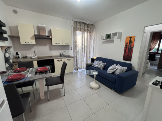 This charming apartment is located in a very quiet area on the first mezzanine floor of a building on Via Togliatti in Porto Potenza. It comprises an entrance hall, a living room with a kitchen, an induction stove, a peninsula, and a double sofa bed, and a balcony. A small hallway leads to the bathroom with a window, shower, and washing machine. The spacious double bedroom has a pull-out bed, a desk, and a balcony. Both the living room and bedroom are air conditioned. The gas system is no longer present, but has been replaced with a boiler. Wi-Fi, self-check-in, a coffee maker, and a vacuum cleaner are also available. Small pets are welcome. The apartment is an 8-minute walk from the sea, 4 minutes from the city center, and 1.5 km from the Santo Stefano Institute. Prices