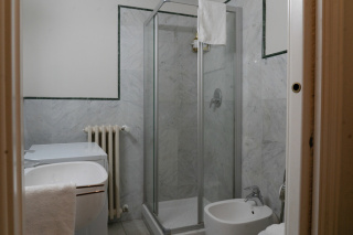 Elegant apartment with elevator located at Via de'Rondinelli 6, 200 meters from the Duomo and 300 meters from the Santa Maria Novella train station. It comprises an entrance hall, living room with a built-in kitchen, three bedrooms, and three full bathrooms, each with a shower, for a total of approximately 120 square meters. The living room features a sofa bed. For groups of up to 12-14 guests, it can be booked together with the neighboring Rondinelli Charme Bijoux apartment (in the same building). Prices |