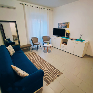 A two-room apartment of approximately 60 square meters in a relaxing area 1 km from the center, with private parking. Each room is air-conditioned. Prices