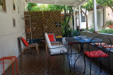 In central but quiet area, mini-apartment in villa with garden and outdoor space also equipped with kitchen, large double bedroom, dining area with kitchenette and armchair bed, bathroom with shower, air conditioning, WiFi, full linens available.