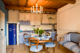 This apartment is part of a larger villa divided into four independent apartments, each with a double bedroom, twin bedroom, kitchen, dining area, and bathroom with shower. There is a private terrace or outdoor area. A separate swimming pool and BBQ area are shared with other guests. The outdoor area is very spacious.