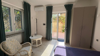 Detached studio apartment with garden and parking space.