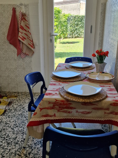 The apartment is on the ground floor, composed of living room with dining area, semi-dining kitchen, 1 double bedroom, 1 bedroom with French bed, 1 bathroom with bathtub, private garden, internet line