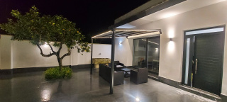 Detached villa with 3 bedrooms, 2 bathrooms with showers, a third outdoor shower, a laundry area, a kitchen/living room, a sun roof, 2 sun beds, a barbecue, an outdoor table and chairs, an outdoor sitting area, and air-conditioned rooms. Bed linen and bath towels are provided. Prices