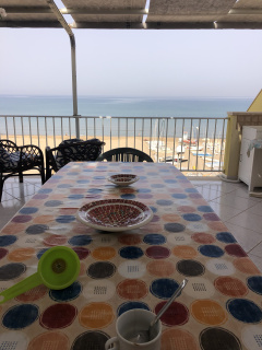 Apartment located on the Scoglitti seafront promenade facing the sea with two bedrooms and a small room sleeps 6, kitchen, bathroom, large veranda facing the sea and balcony behind, breakfasts with sea views and breathtaking sunsets