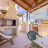 De B & B Pilella biedt ook een buitenruimte naar de kamers met tafels en stoelen.